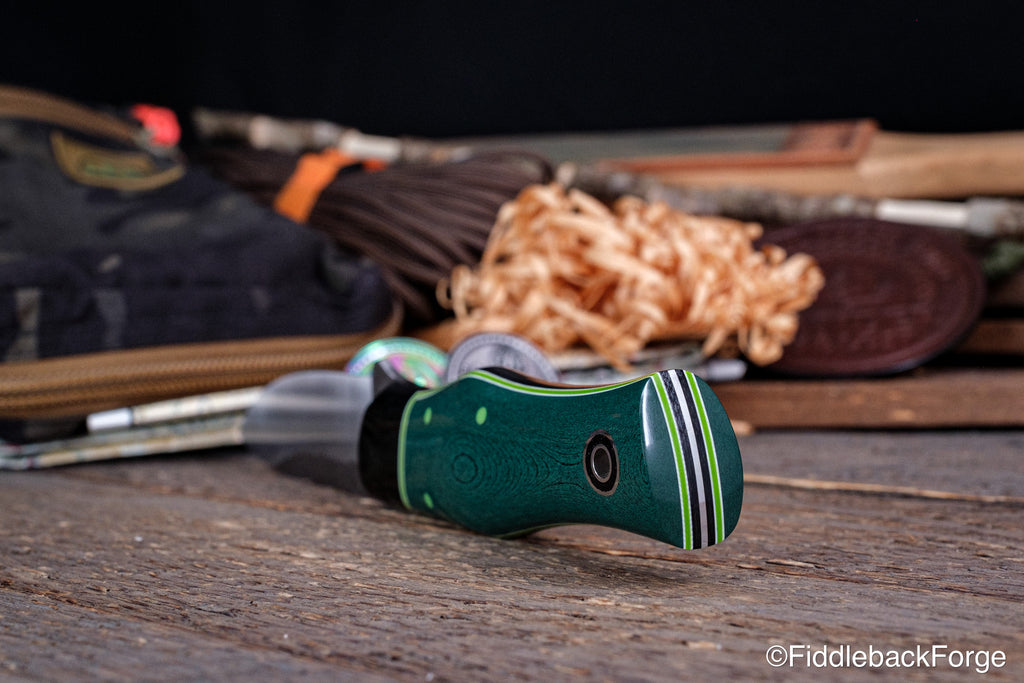 Handle Material: Vintage Emerald Paper Micarta - Black Bolster and Liners - Lime and White Stripes