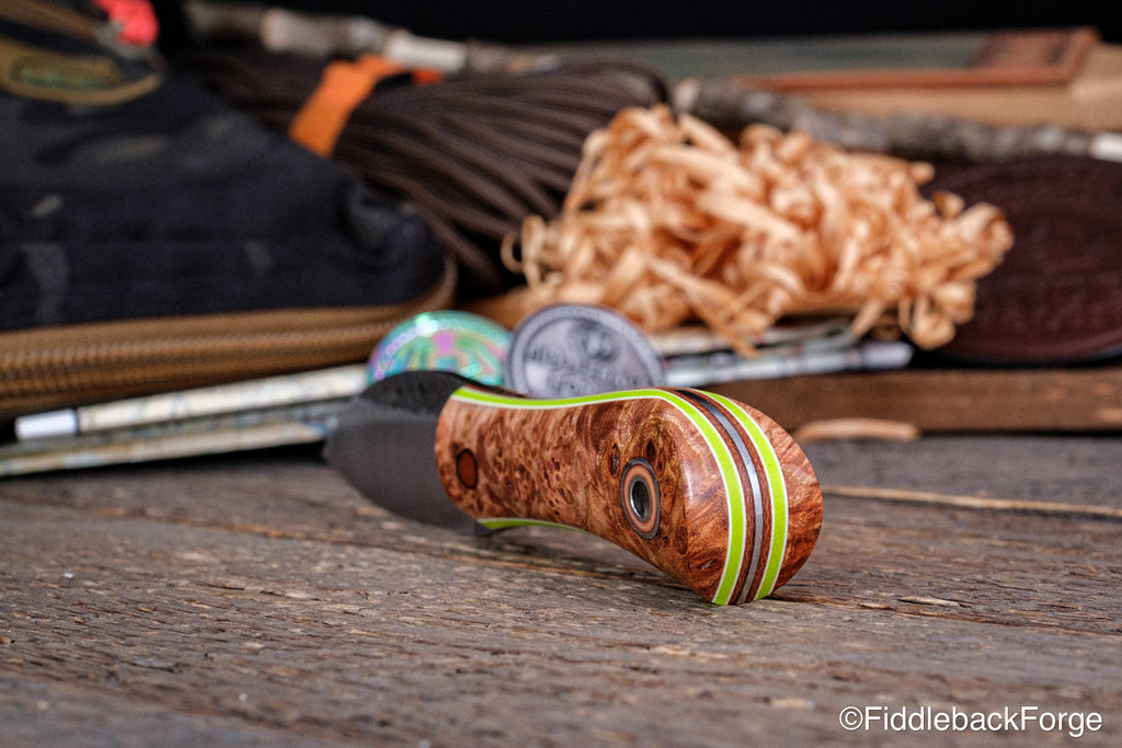 Handle Material: Maple Burl - Natural Liners - DayGlow and White Stripes