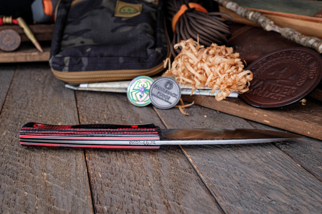 Models include: Fiddleback Forge Low Country (x2), Gullet, Lonestar EDC, Snowbill, Petit Oiseau, and BUSHBOOT (x4).