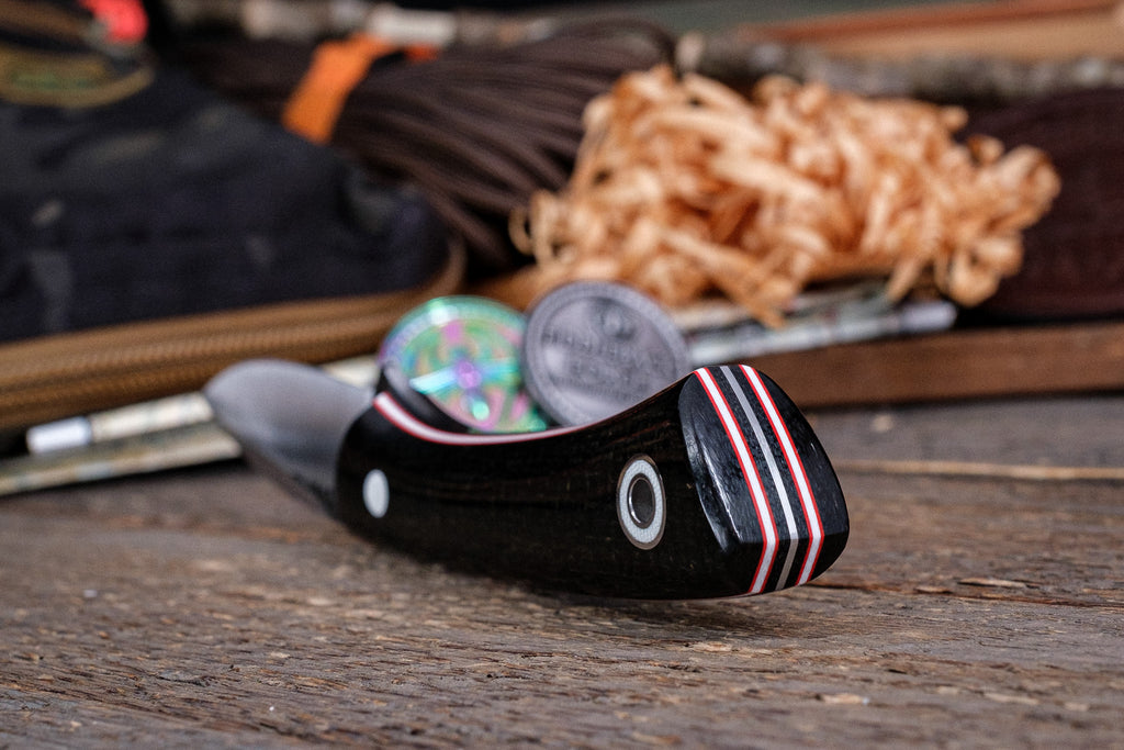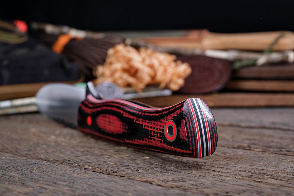 Handle Material: Black Widow Micarta - Black Liners - Red and White Stripes