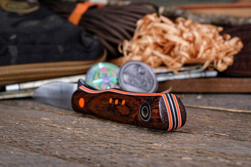 Handle Material: Cocobolo - Black Liners - Orange and White Stripes