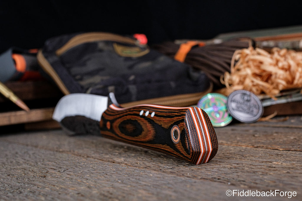 Models include: Fiddleback Forge Hiking Buddy, Handyman, Lonestar EDC, Snowbill, and Petit Oiseau.