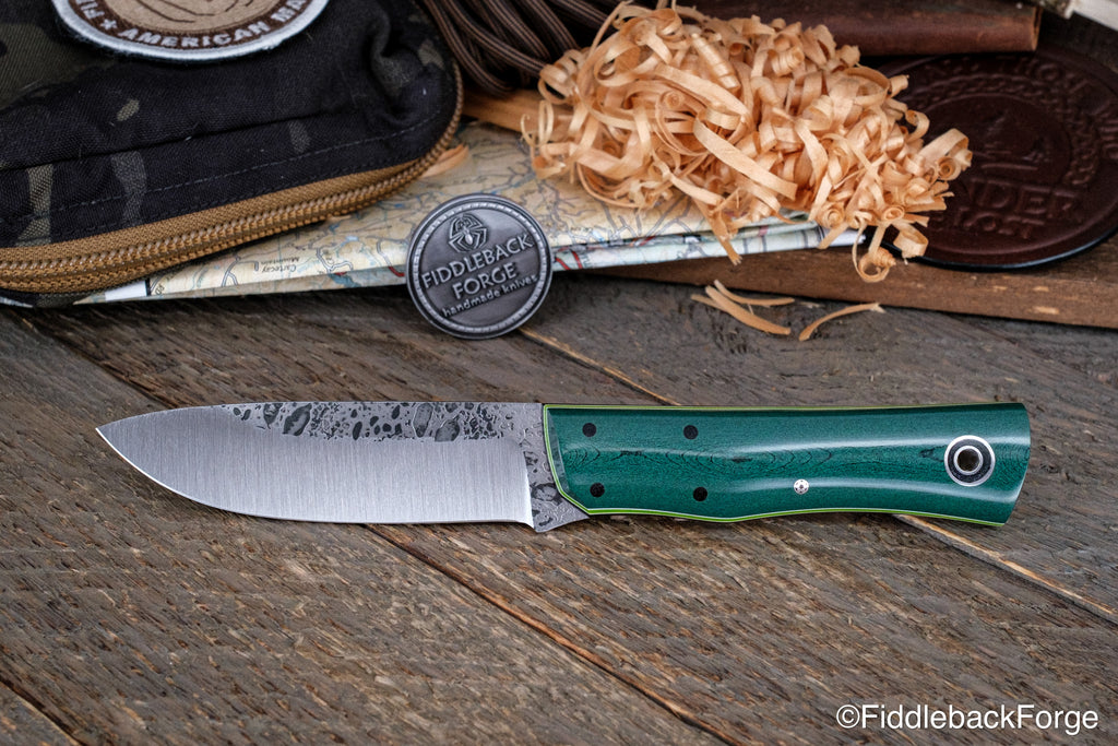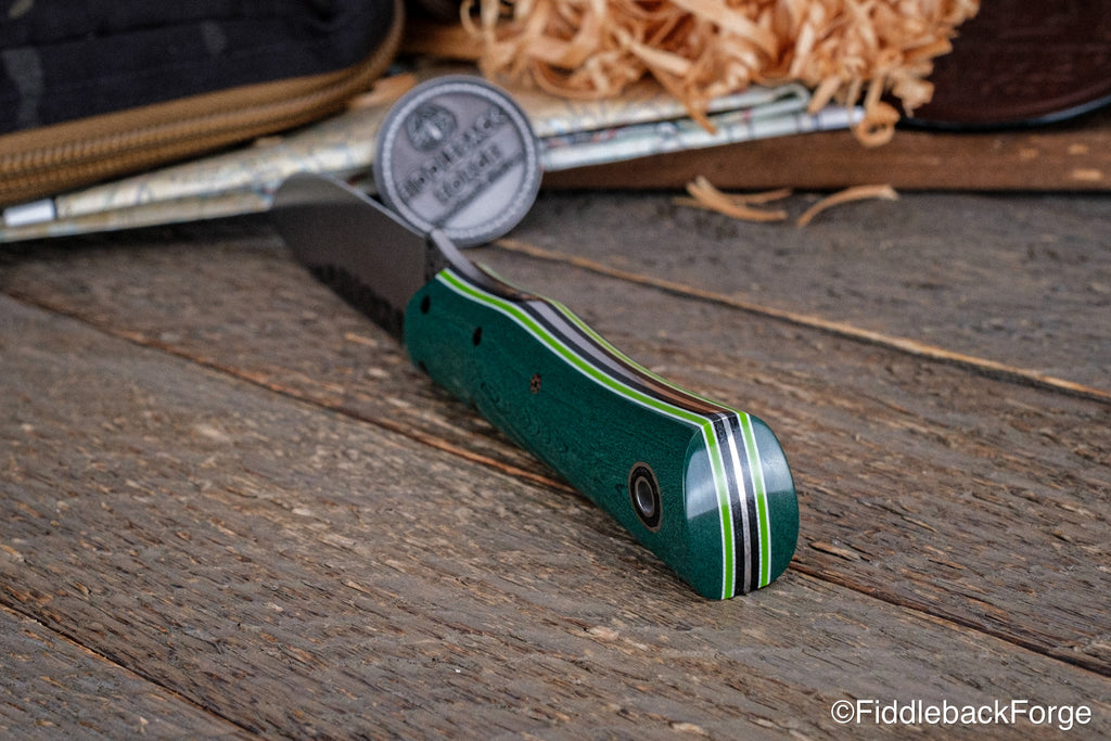Handle Material: Vintage Emerald Paper Micarta - Black Liners - Lime and White Stripes