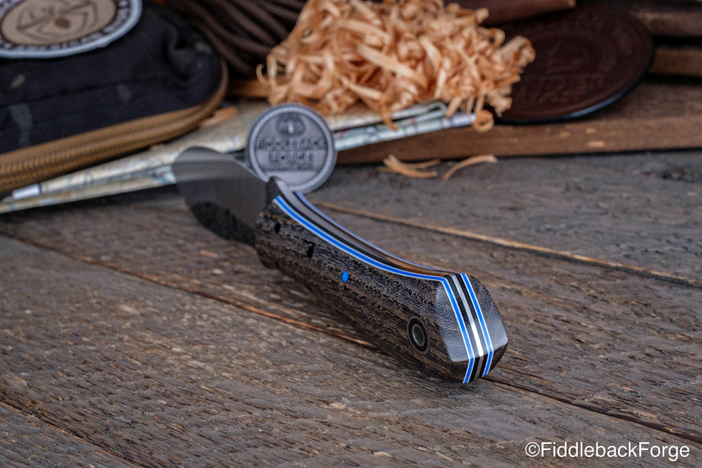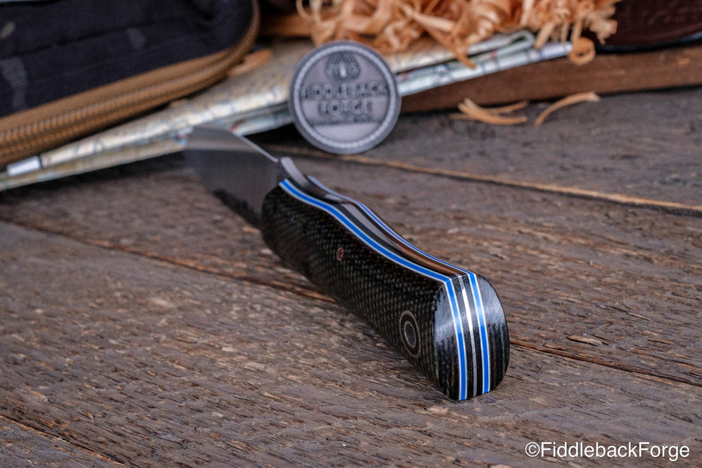 Handle Material: Black Firehose Micarta - Black Liners - Blue and White Pinstripes