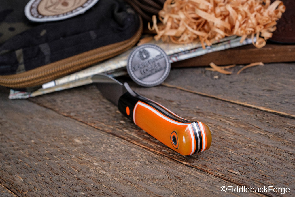 Handle Material: Lager G-10 - Black Bolster and Liners - Orange and White Stripes