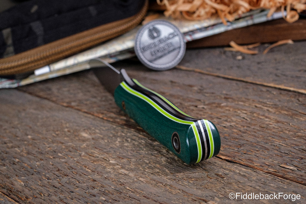 Handle Material: Vintage Emerald Paper Micarta - Black Liners - DayGlow and White Stripes - Mosaic Pin