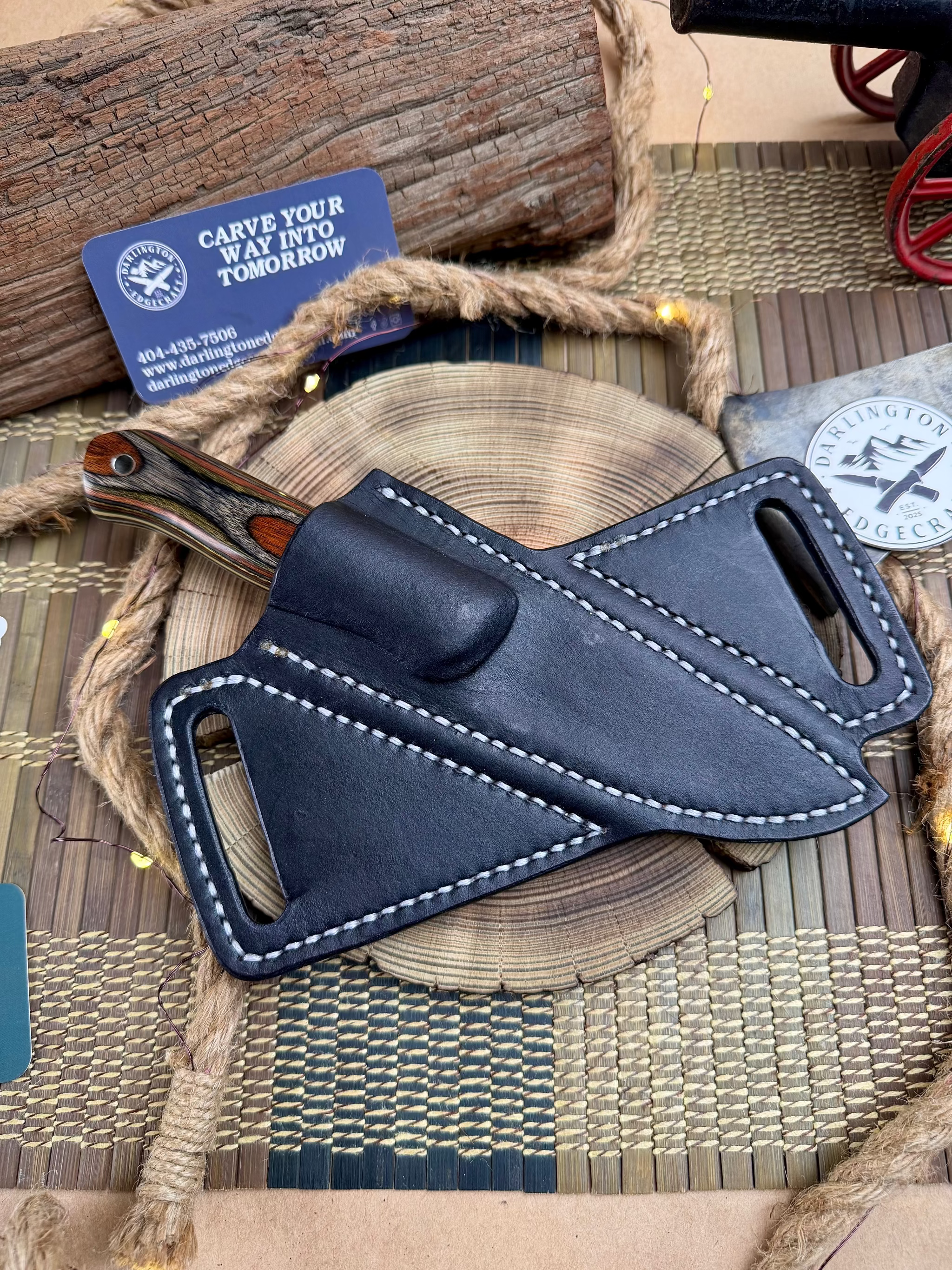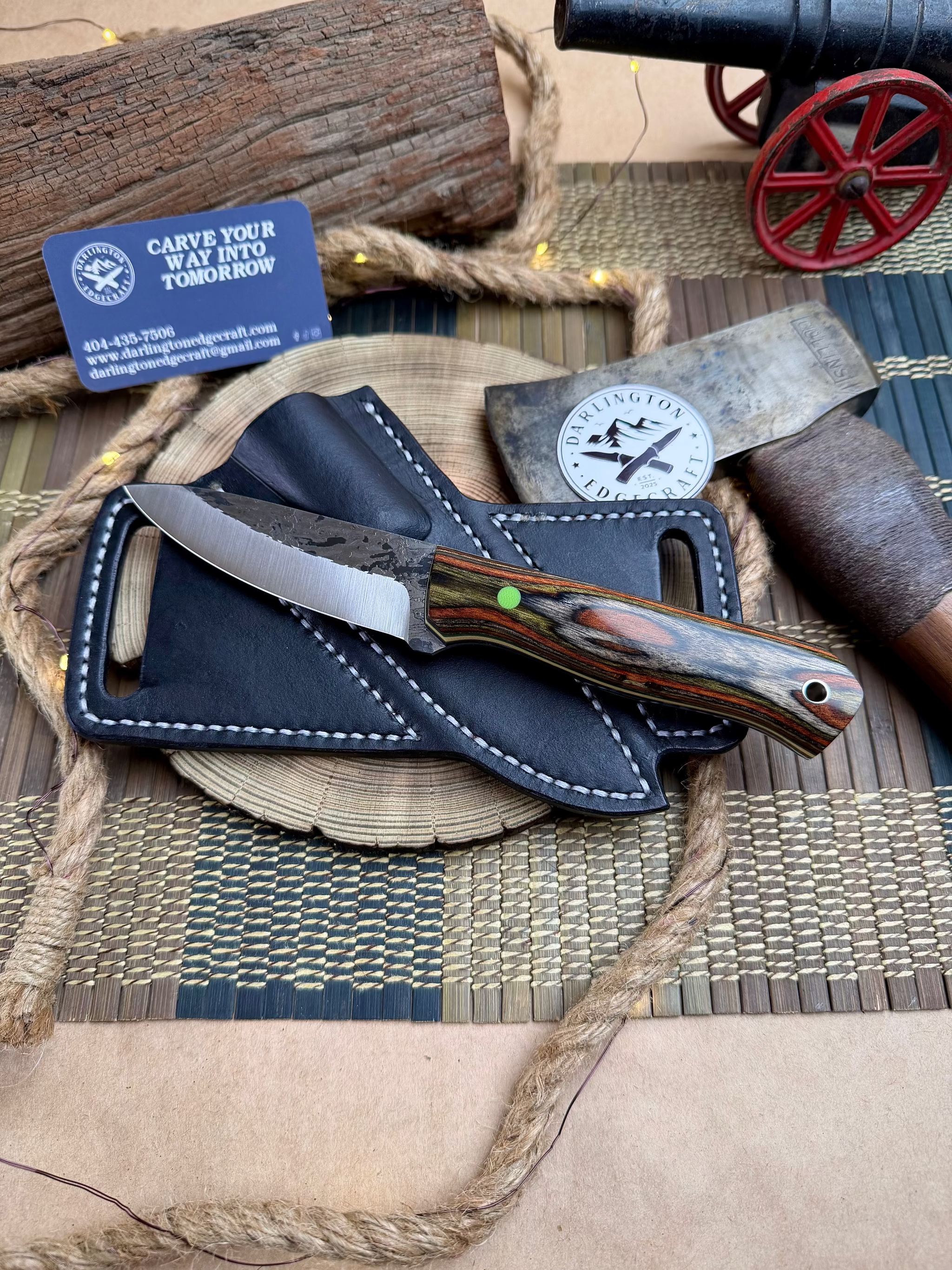 The maker at Darlington Steelcraft, Carley Perkins, is the newest apprentice at Fiddleback Forge, and yet, her grinds look like she's been grinding for months, and now she's tapering tangs too!! This is her first full size bushcrafting knife. The Candyman sports a 4" blade and 4.5" handle. The interesting way she terminated the handle fits into your grip just right. You'll love it.