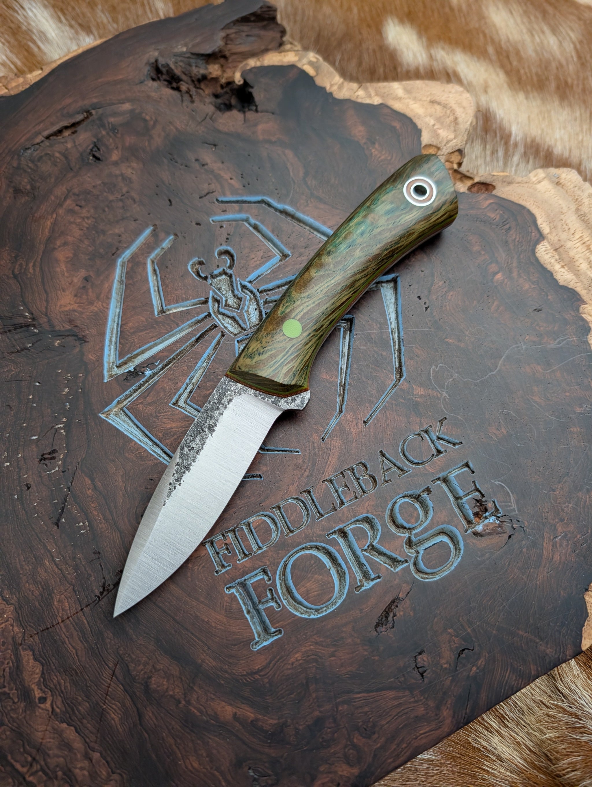 The Fiddleback Forge Bushboot is a beautiful and highly versatile knife with a 3.25” blade and 4” handle. This is roughly the size of the beloved Hiking Buddy, and they share a lot of the bushcrafting and utility functionality. The Bushboot also has a sexy shape, kind of boot-knife inspiration, with it's arched handle design.