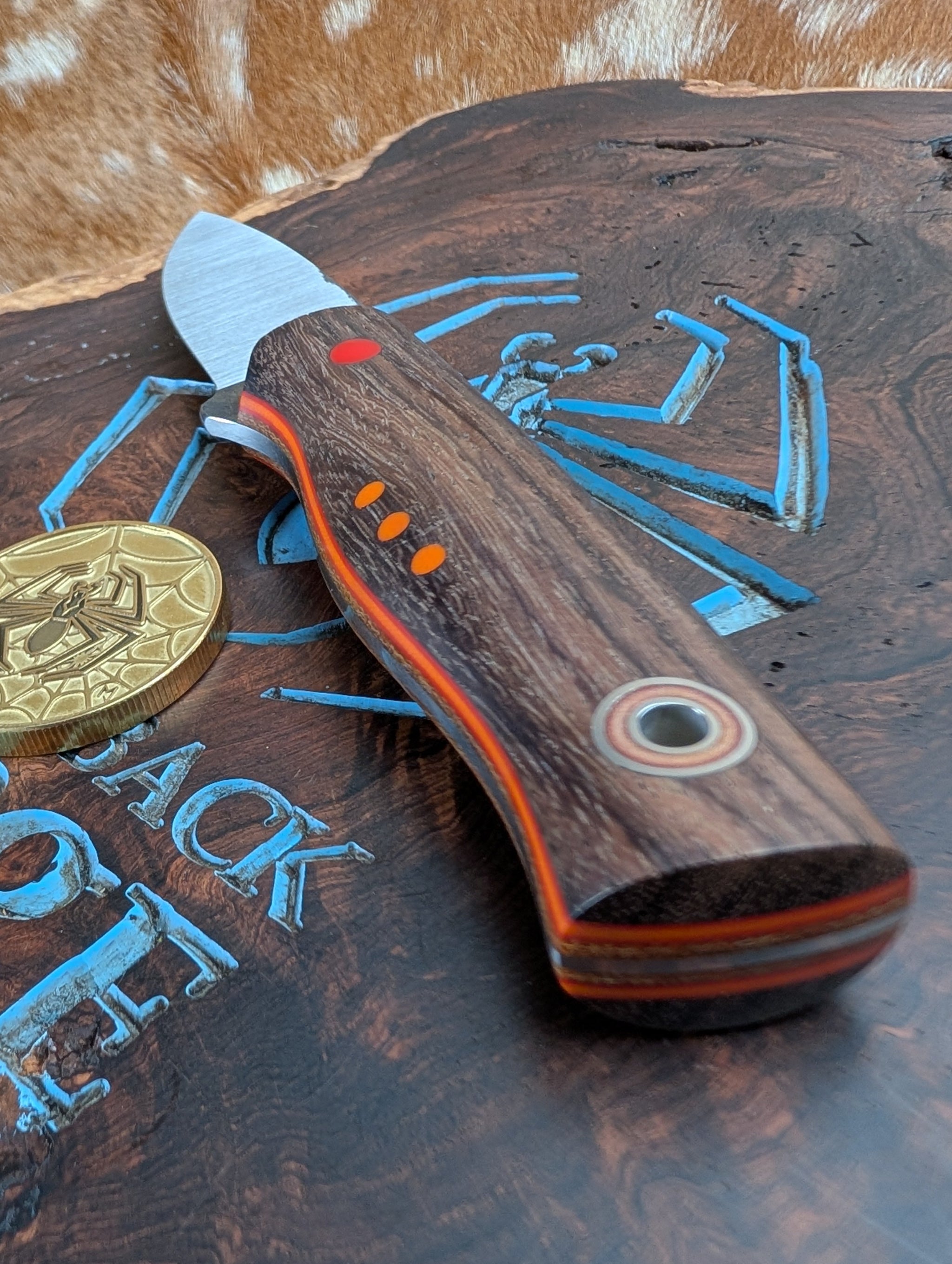 Handle Material: East Indian Rosewood - Natural Micarta Liners - Red-Orange-Red G10 Racing Stripes