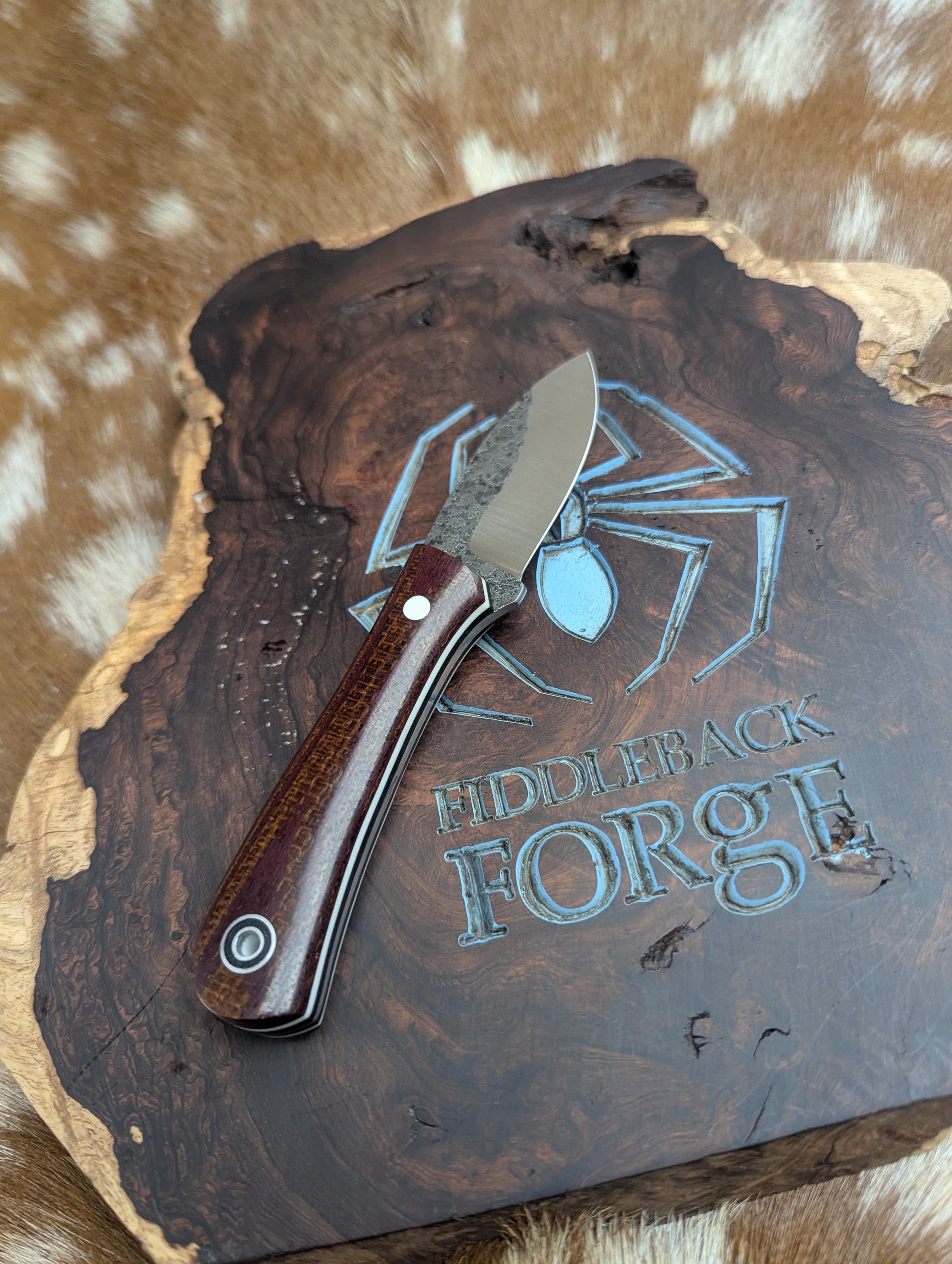 The Fiddleback Forge EDC II was designed to be carried daily and provide maximum comfort while performing tasks you'd likely encounter on a daily basis. The design is intended as a non threatening kind of spear point fixed blade knife. It has a stout point for drilling and is a great knife for just about any outdoor task. But the shape lends itself well to be an everyday carry knife. Well-rounded would be the way to describe this great design.