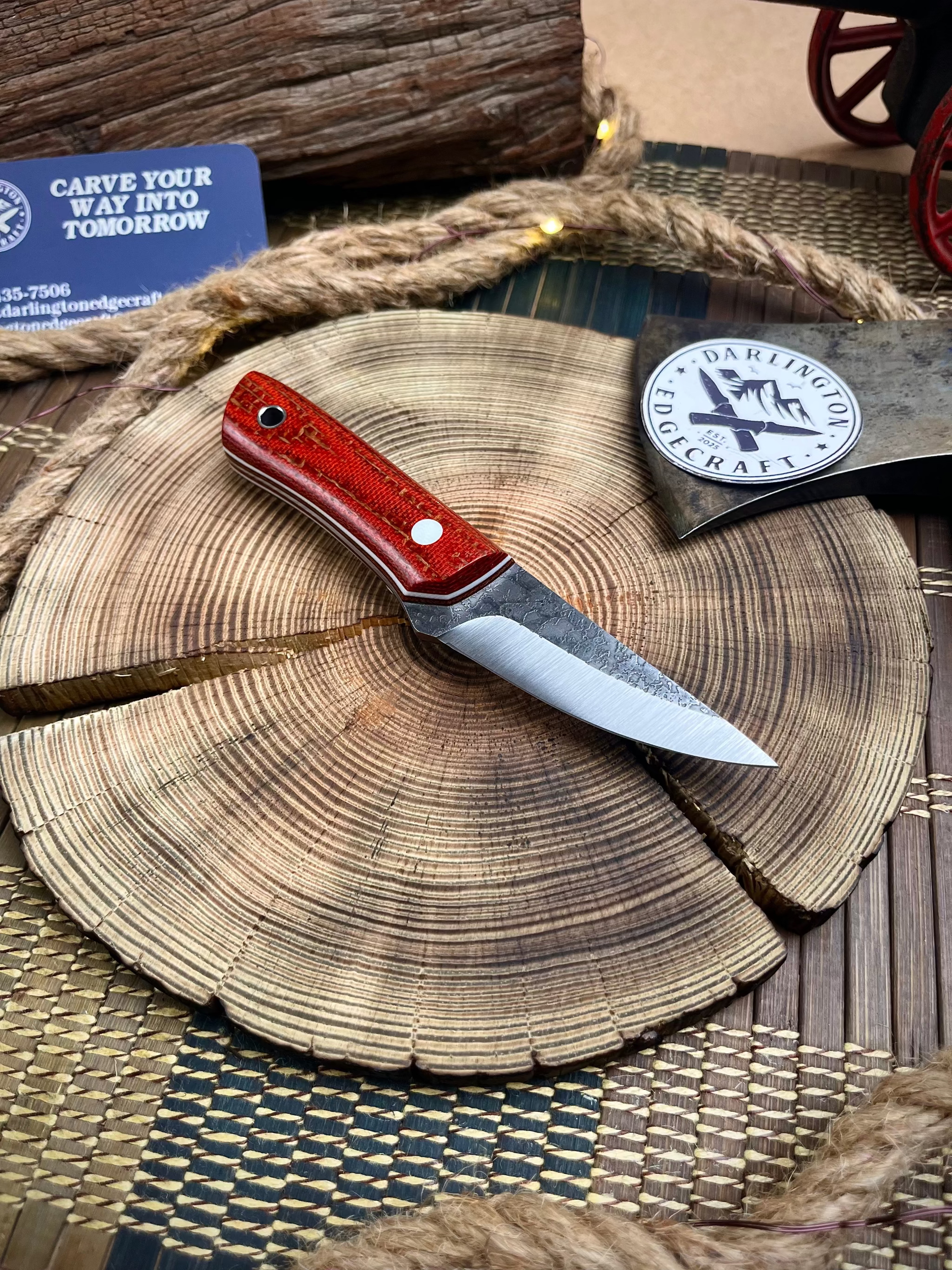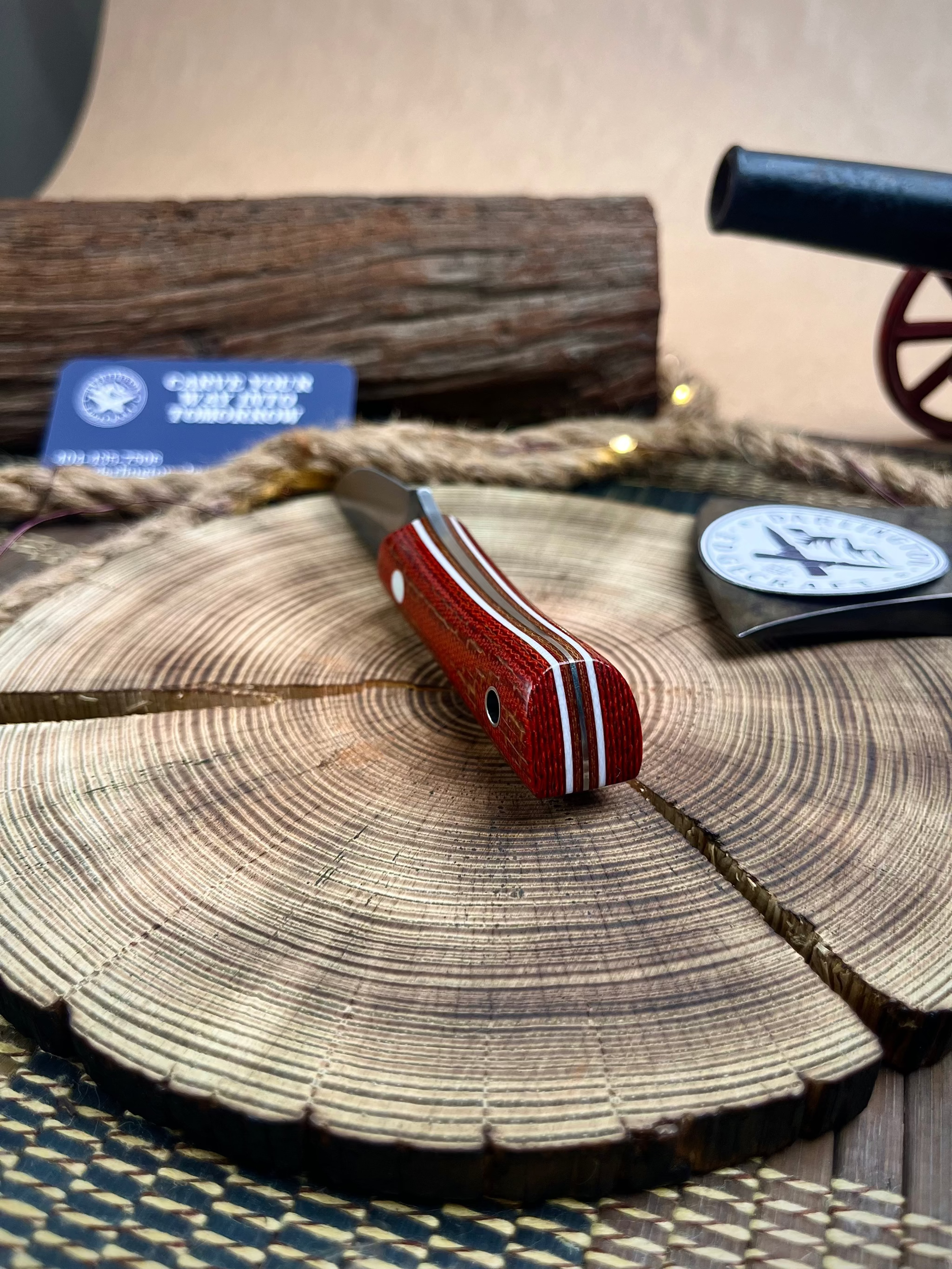 Darlington Edgecraft Silo -  Bright Thermite Burlap Micarta - Natural Liners - White G10 Pinstripes