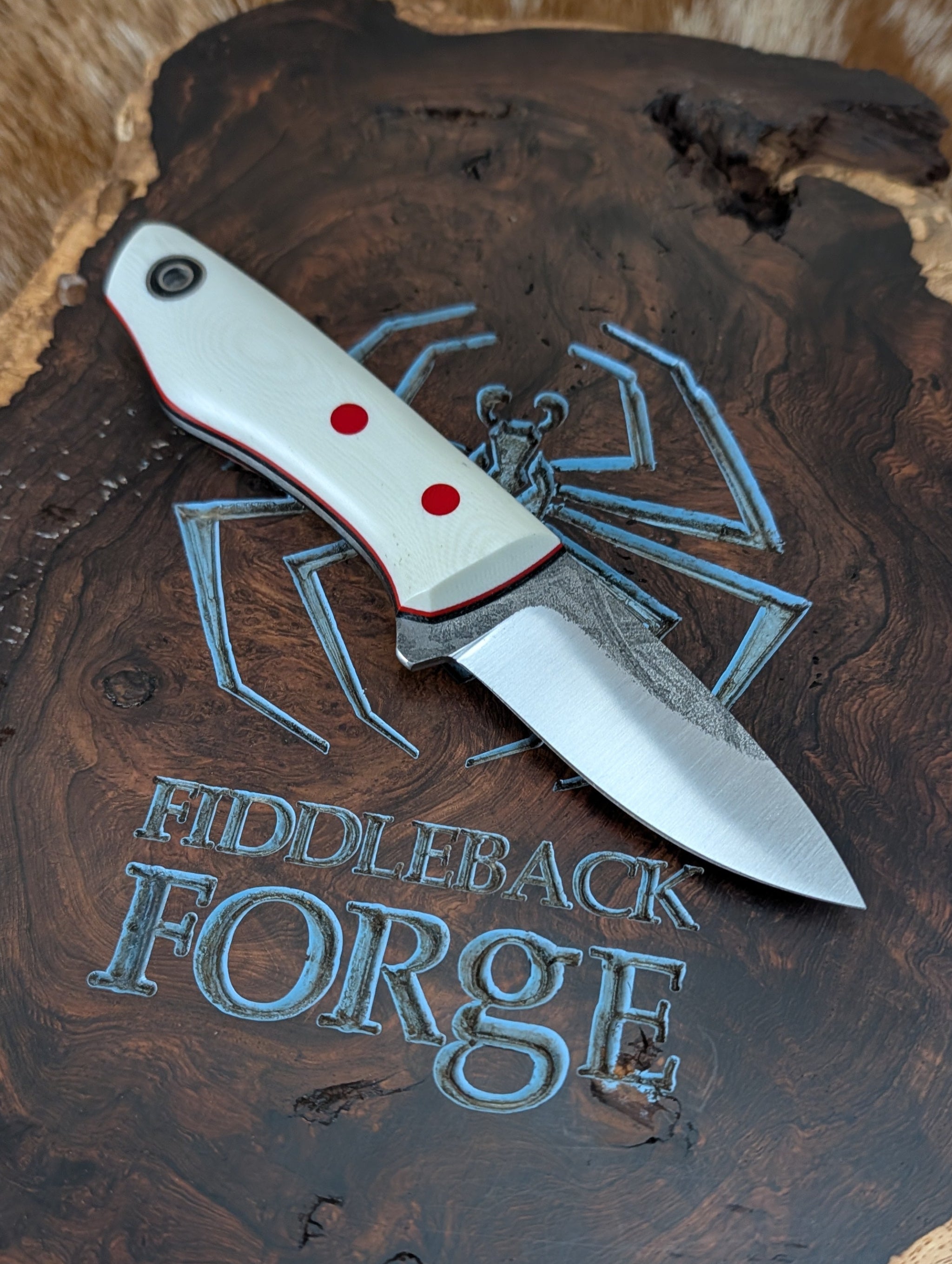 Fiddleback Forge Snowbill Knife - White G10 - Black Micarta Liners - Red Pinstripes